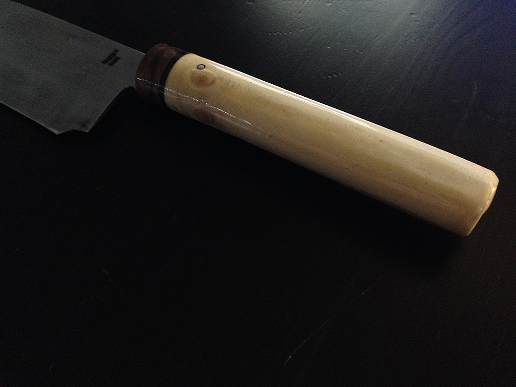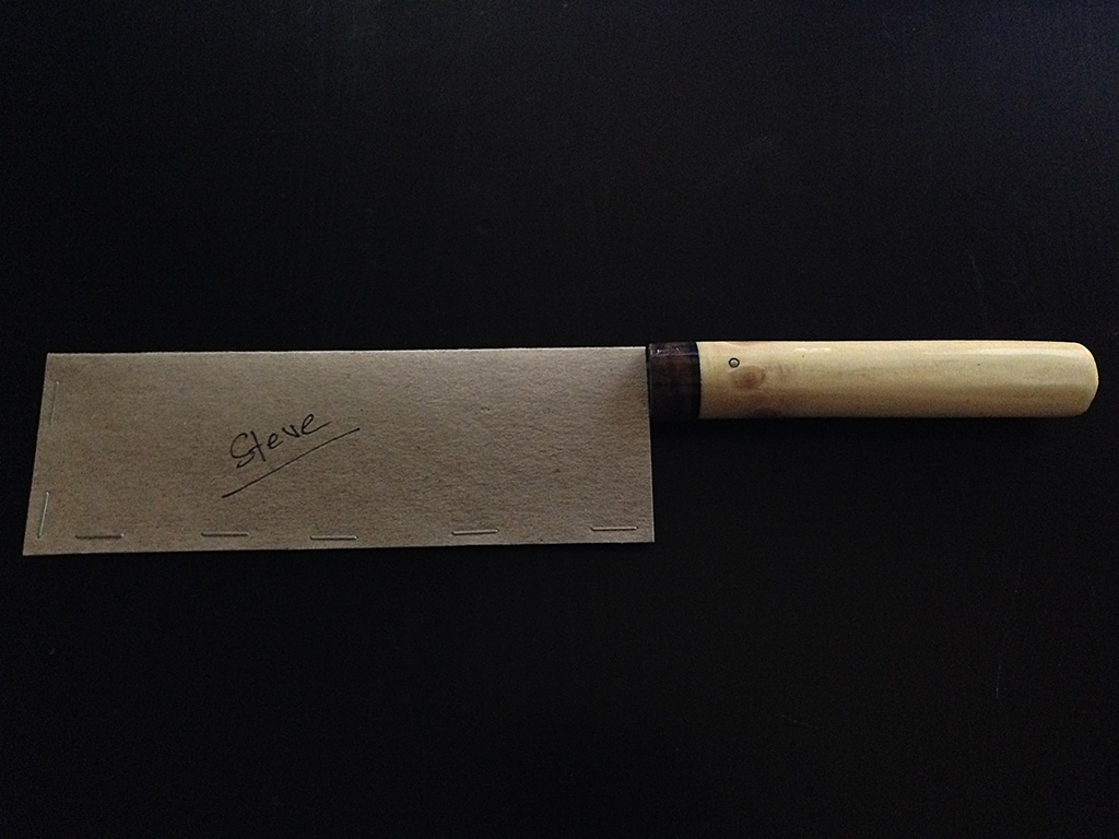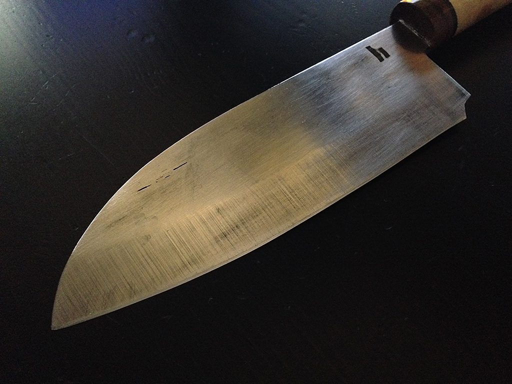 A new kitchen knife for one of my best friends, Steve. It has become rock-hard and razor-sharp, and I hope it will really serve him well for a long time!