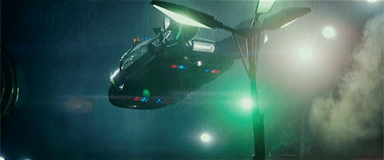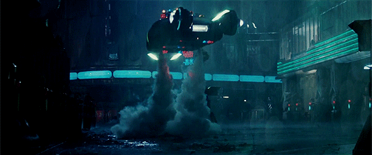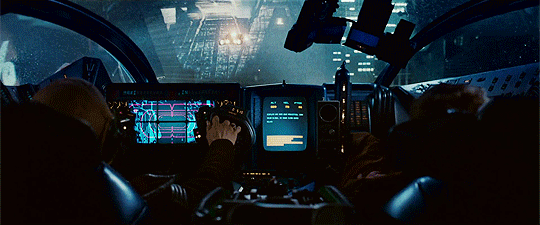 They are used extensively by the police to patrol and survey the population, and it is clear that despite restrictions wealthy people can acquire spinner licenses. The vehicle was conceived and designed by Syd Mead who described the spinner as an “aerodyne”—a vehicle which directs air downward to create lift, though press kits for the film stated that the spinner was propelled by three engines: “conventional internal combustion, jet, and anti-gravity.” Mead’s conceptual drawings were transformed into 25 working vehicles by automobile customizer Gene Winfield.