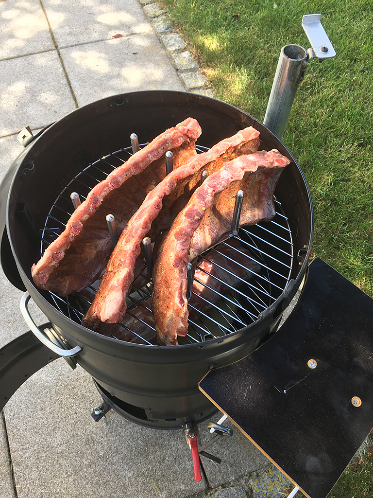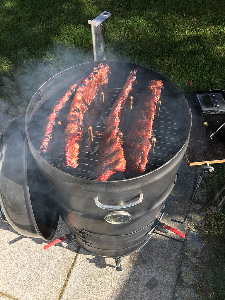 Yeah! Four racks of baby back ribs and two barbecue fatties! I’m going to try out he new “small” UDS that I made last winter. It has worked beautifully for cold smoking bacon, now I’m curious about how it’ll perform smoking a serious load of meat. Some friends are going to come over tonight, we’re going to have some beer for the boys, some wine for the ladies and lots to eat. My mouth already waters in anticipation…