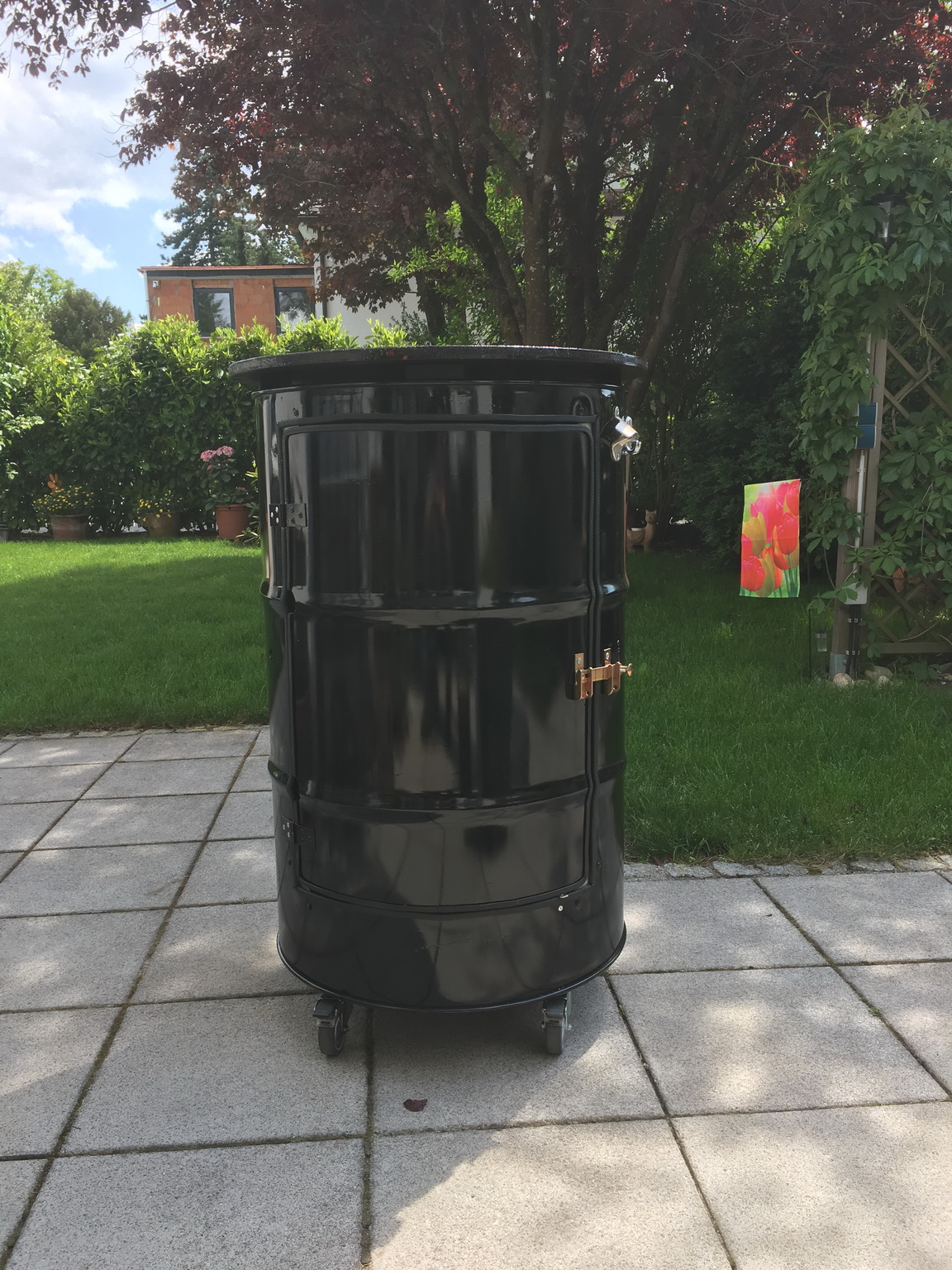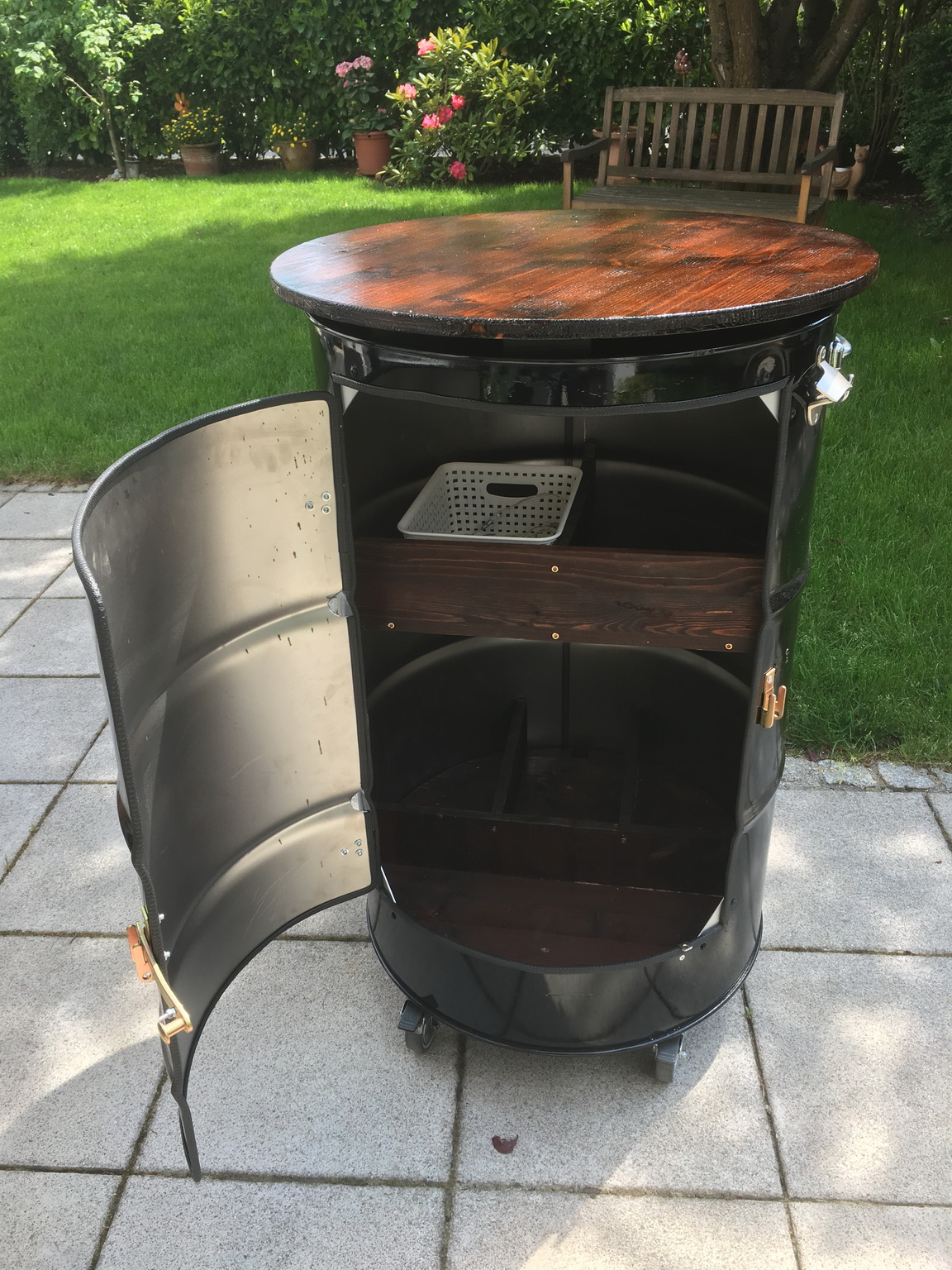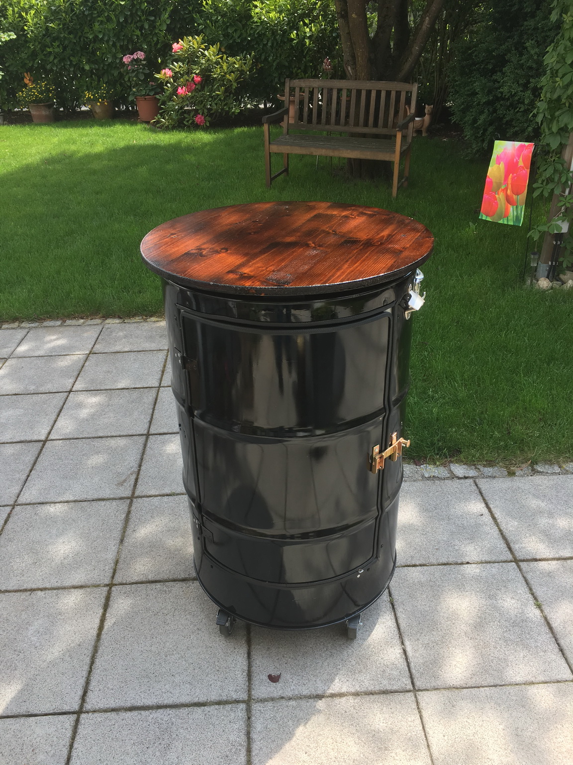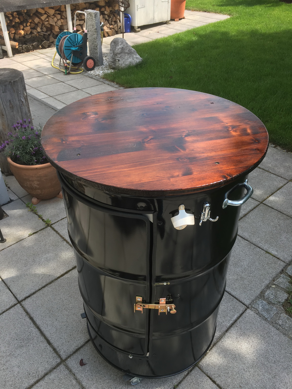 So the Barrel-garden-table is finally done. It looks nice enough and I’m looking forward to trying it out.
