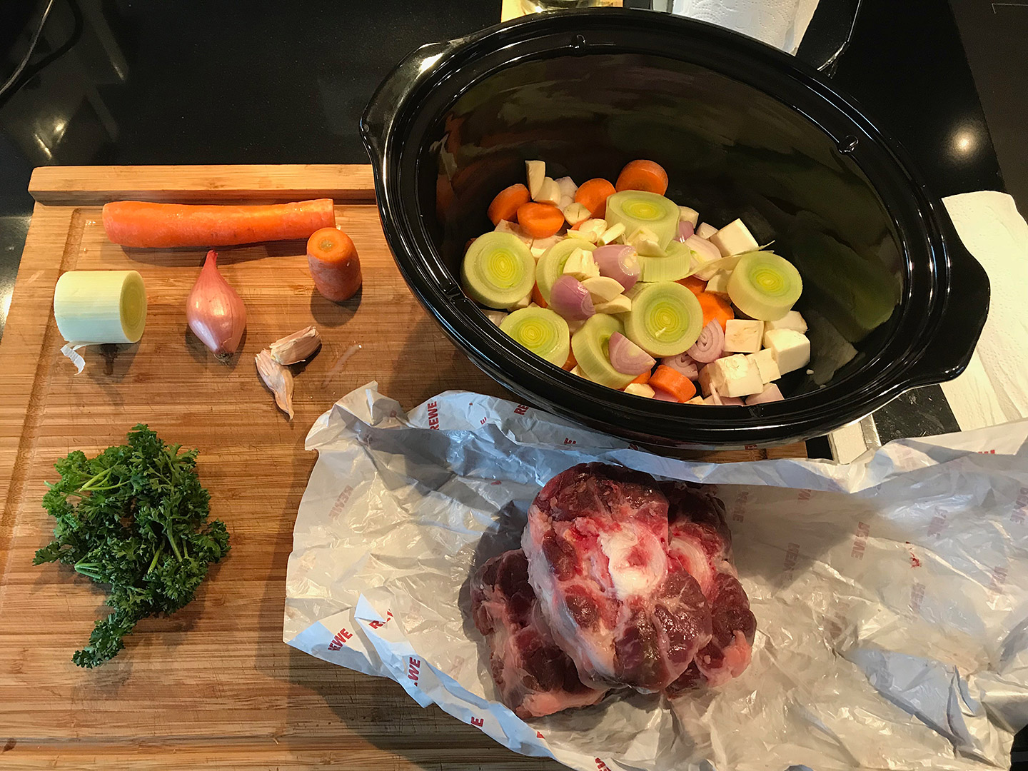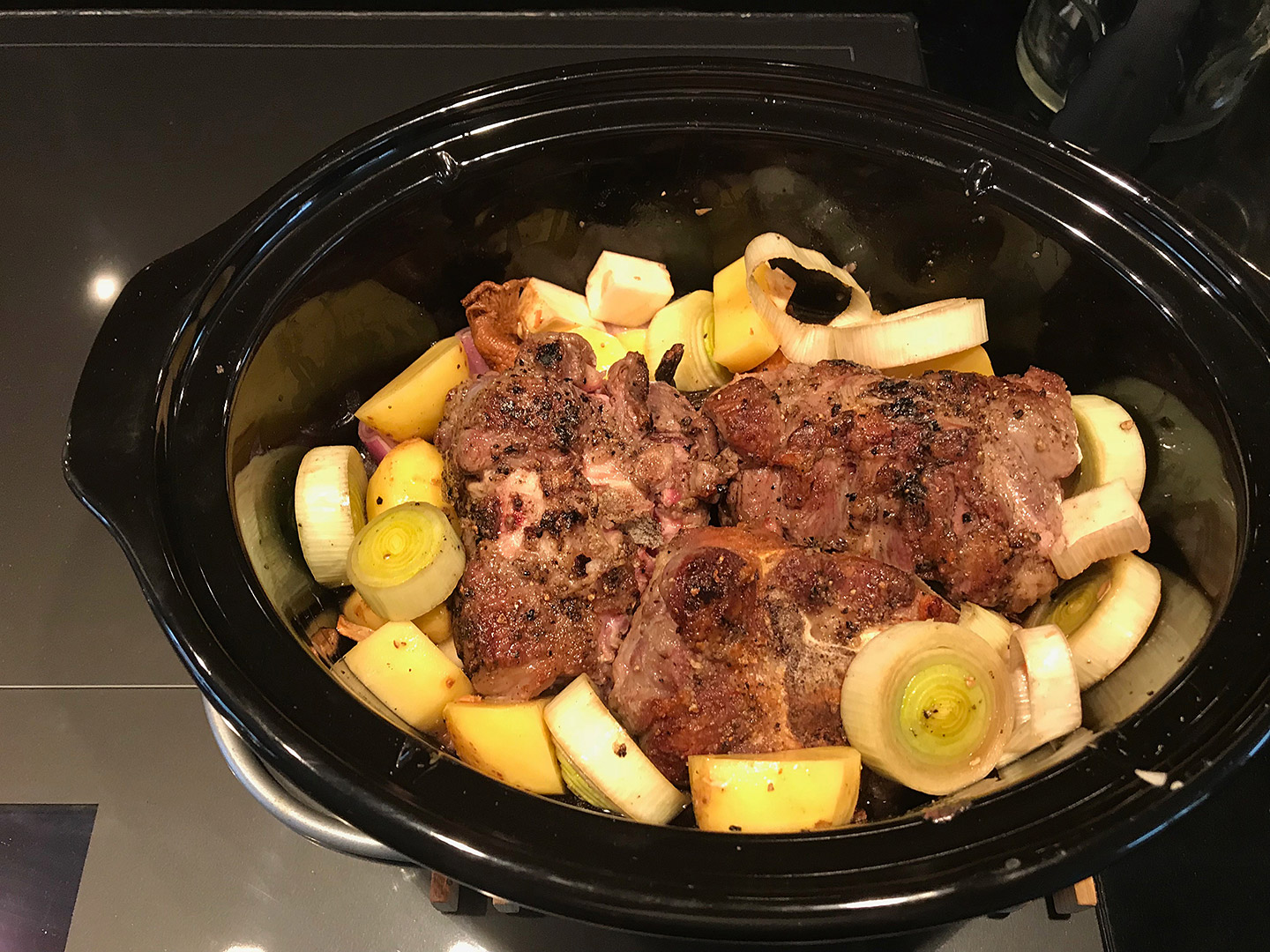 My SO is on tour visiting her familiy, so I had the opportunity to make my delicious beef leg stew in the crockpot yesterday. It’s really easy, yummy and filling. Follow this simple recipe and enjoy a real manly comfort food: