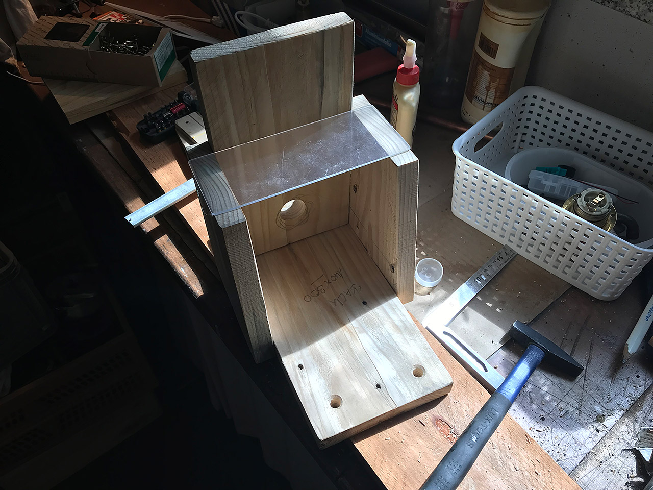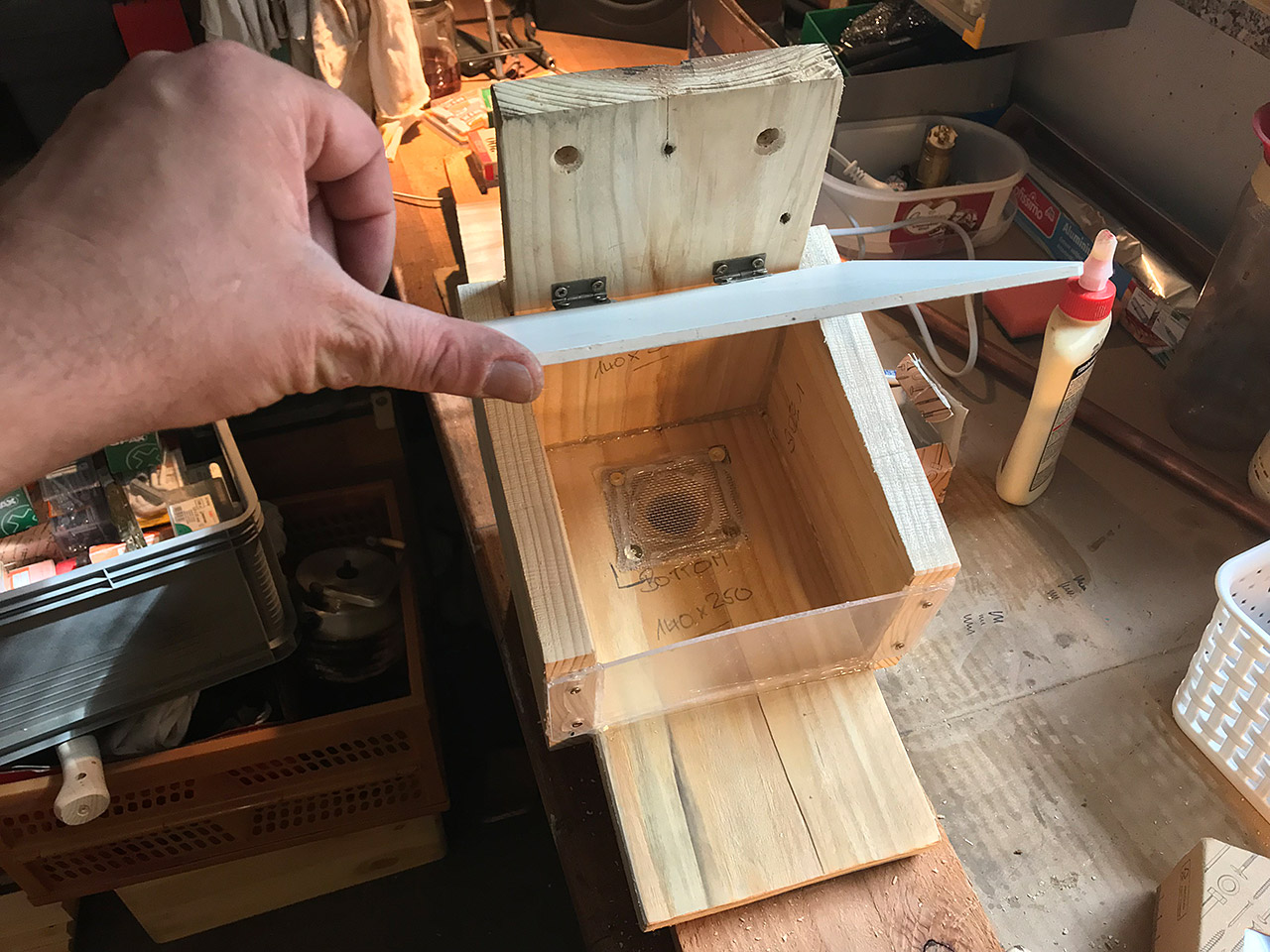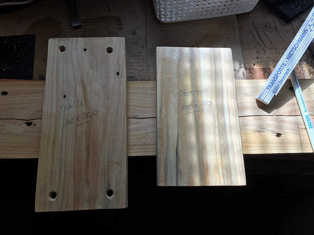 As it is usual for me, it’s made from mainly scrap that was lying around (in this case a remnant board from a dismantled pallet, about one meter long and 14 cm wide). It’s an absolutely simple construction that I’ve combined from several instructions from the web (see images) and it’s easily done in one afternoon.