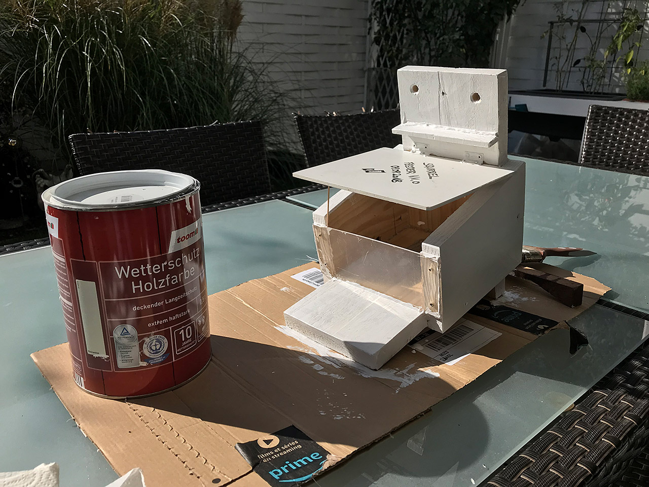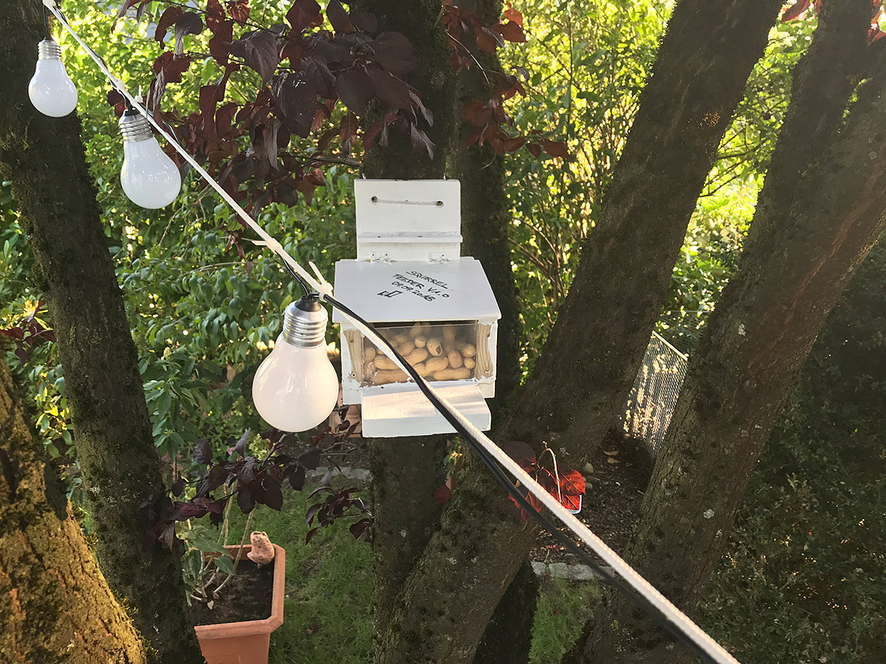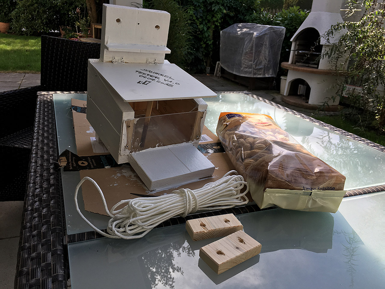 My neighbour, who is a biologist told me that squirrels have had a hard time the last winters here in urban southern germany and that she doesn’t think the situation will improve much this year. Seems the little critters are so excited about the long and hot summer that they simply forget to collect their nuts as supply for the winter. So I made a “squirrel-nut-depot-all-you-can-eat-bar”.