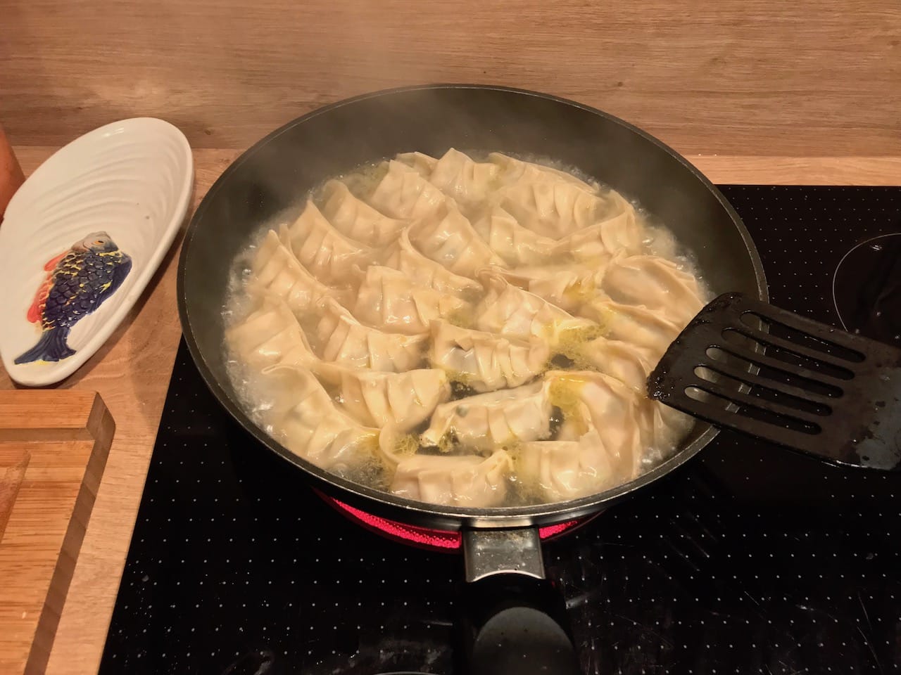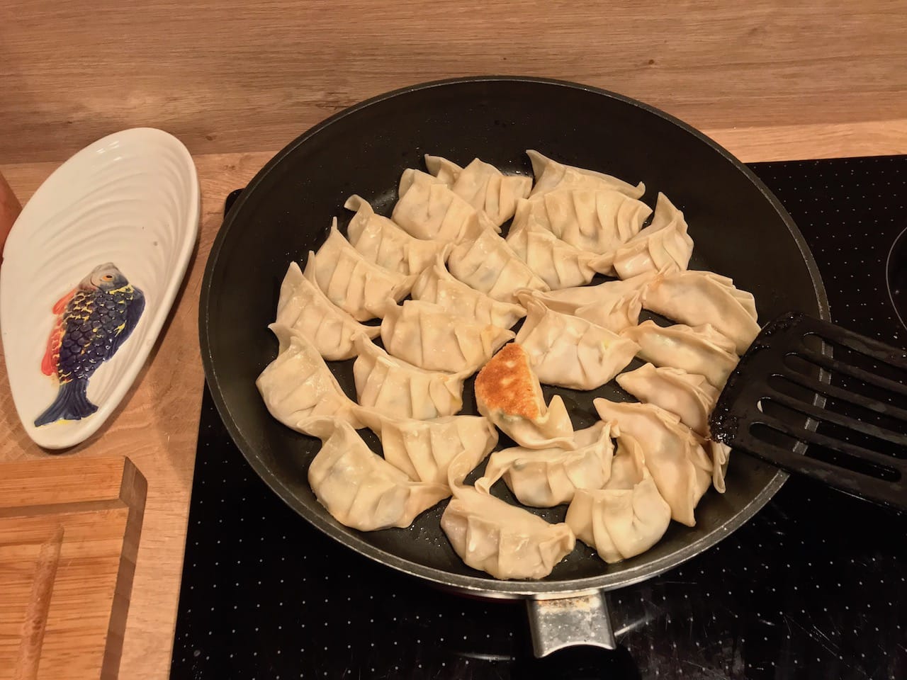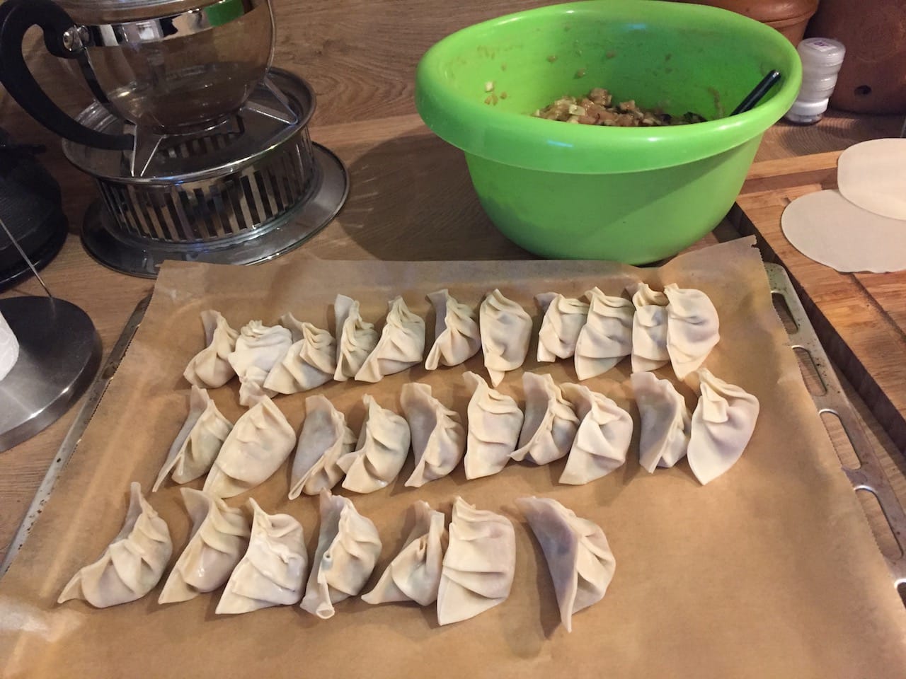 To every asian chef or hobby cook that may ever visit my little site here (if so at all…), you’ll have to be very strong now. This is actual footage of a european (german) amateur cook (aka me) wrapping gyoza (japanese dumplings) at home. This is my way of wrapping them and you surely can make them more pretty, but I swear to god they were extra delicious.