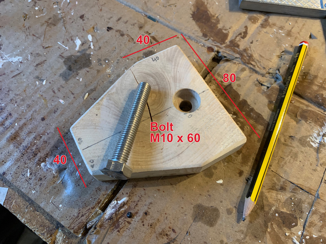 I found out the trick is to give the block a slight angle towards the back, so the pressure from the plane will push the back down onto the workbench. This gives it more stability. Easy tool, but very useful. See the drawing 🙂