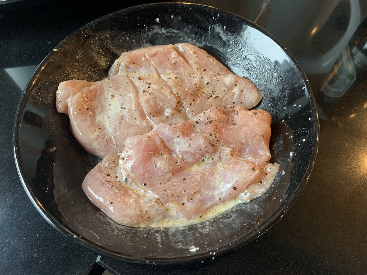 2 chicken breasts, pounded flat evenly
