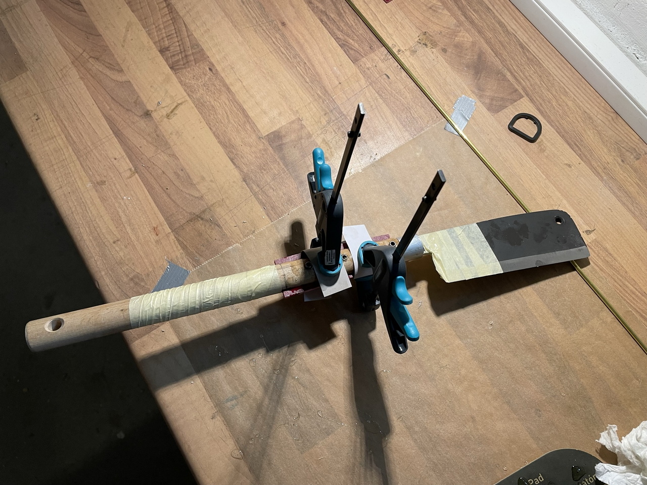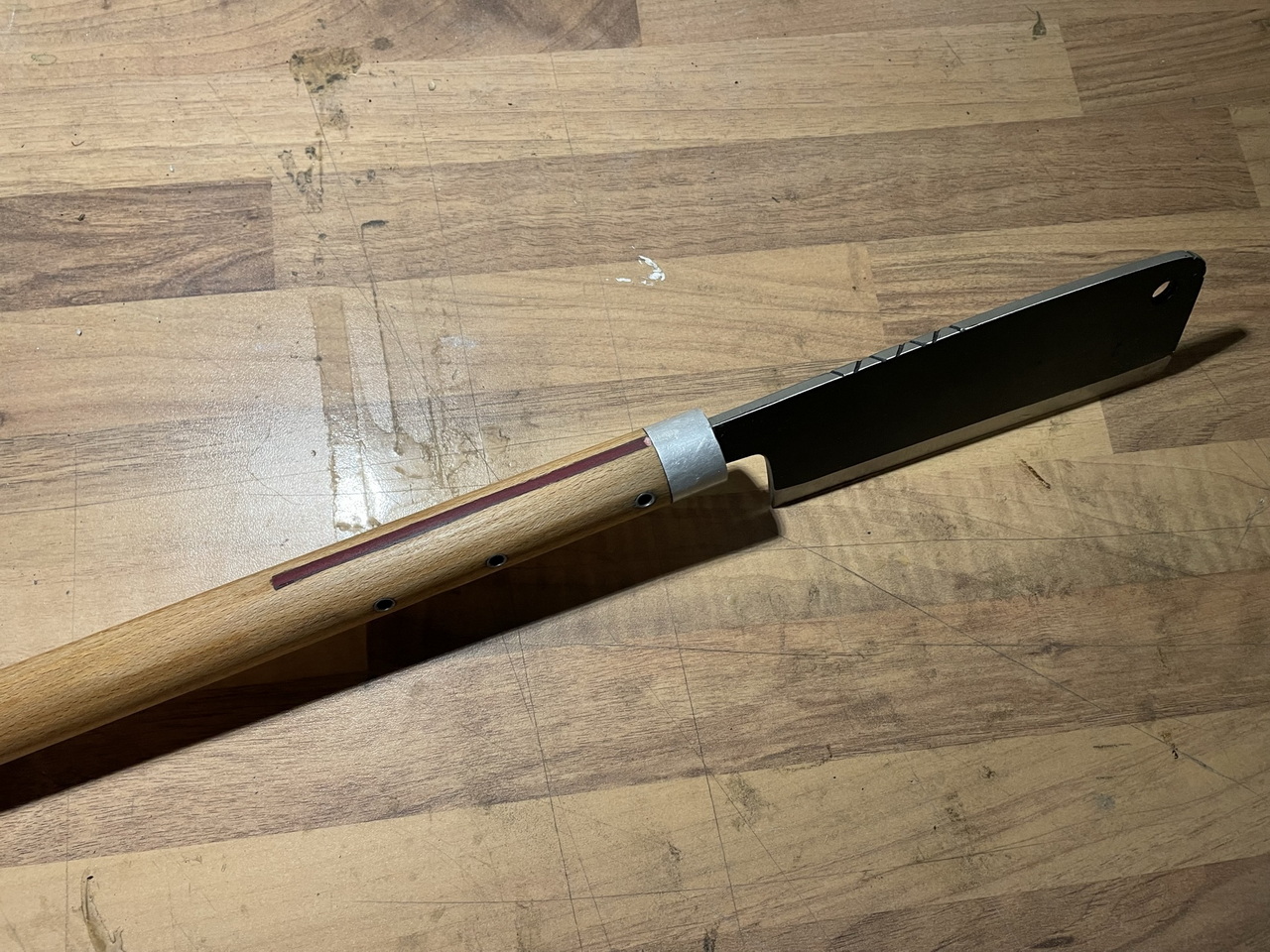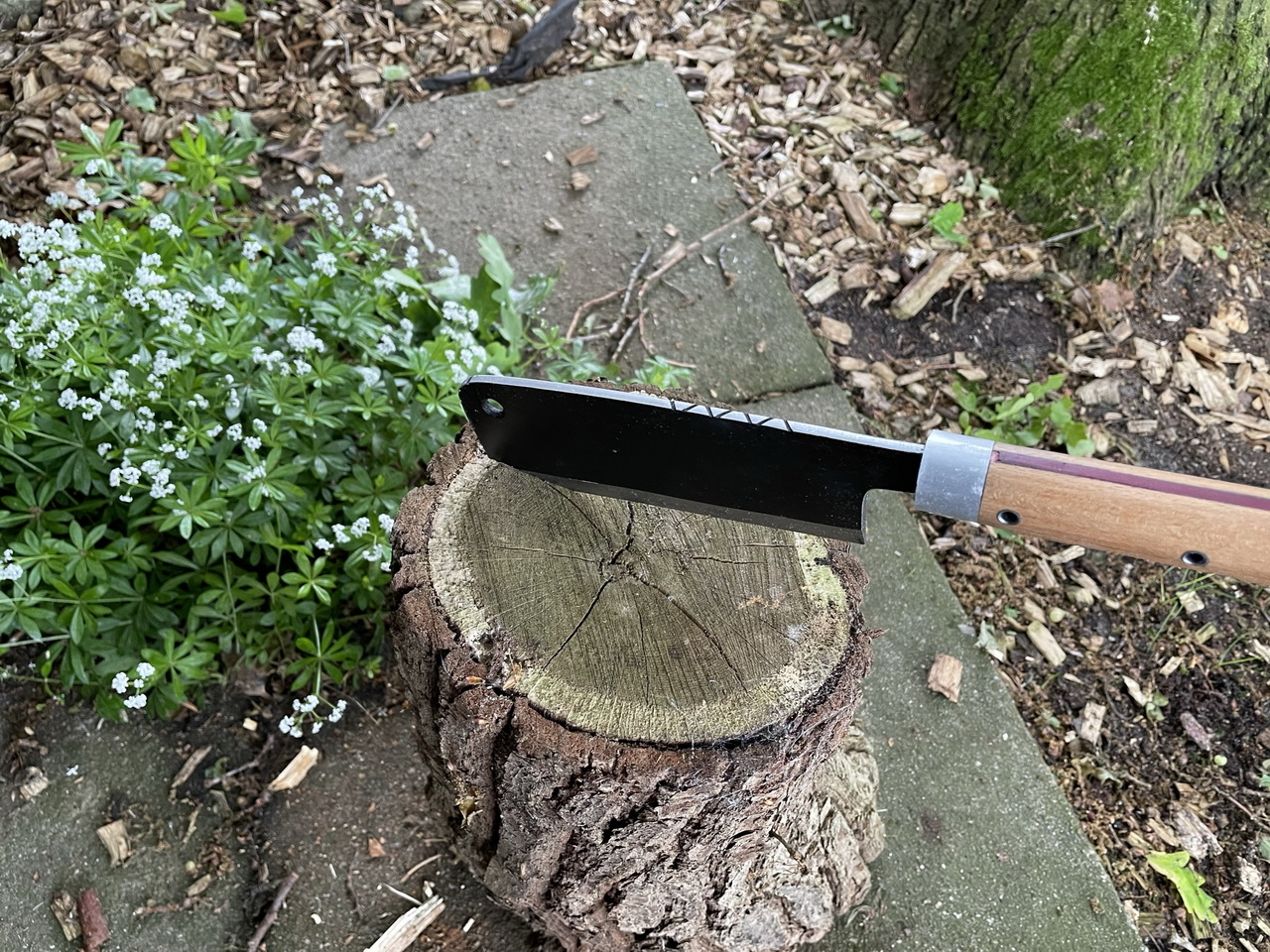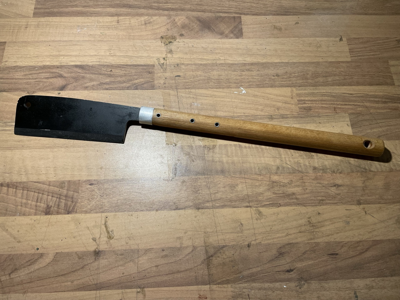 Now, since this was my first attempt at making one and since various shapes and characteristics exist, I tried to incorporate and combine what i liked best from the ones that I looked at more closely. A traditional Nata seems to be sharpened only on one side of the blade, which I omitted though for better handling.