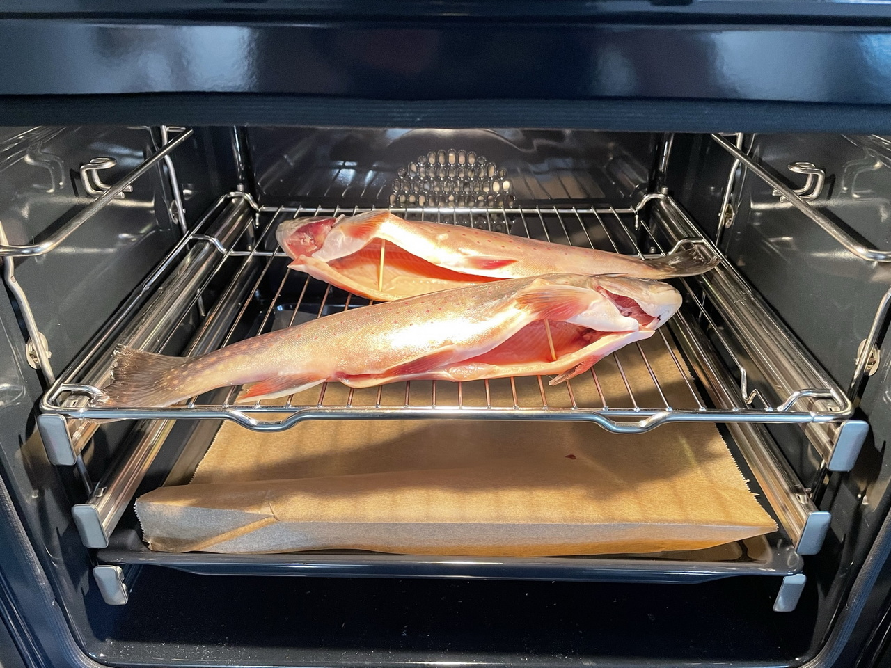Wash your fish thoroughly and brine in the fridge for at least 4 hrs., ideally 6 – 7 hrs. Before smoking, remove from the brine and pat dry with kitchen towel, then dry in the open air (or in the oven at minimum heat) until completely dry on all surfaces (this is crucial).
