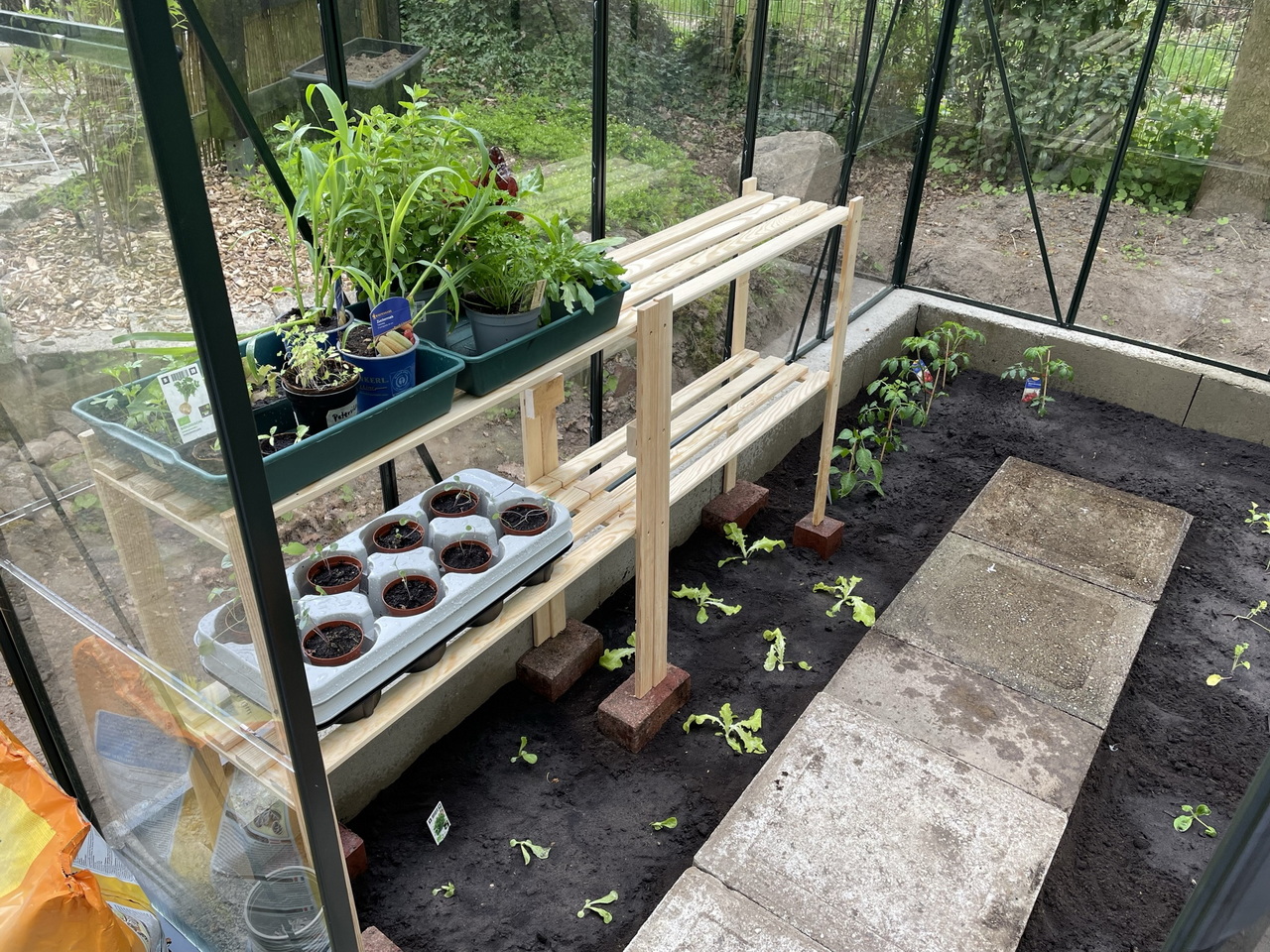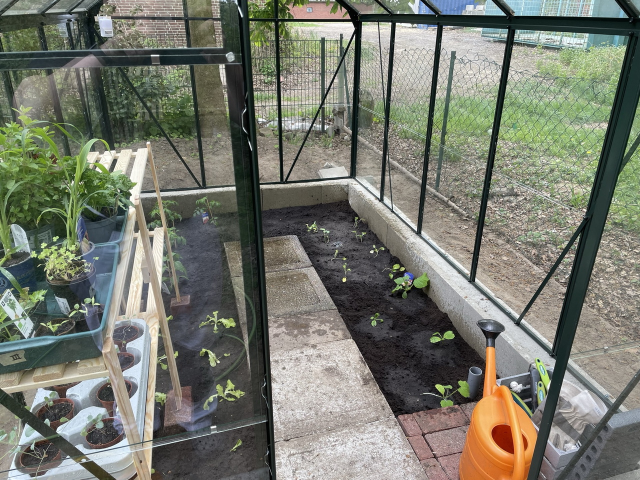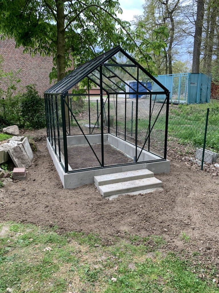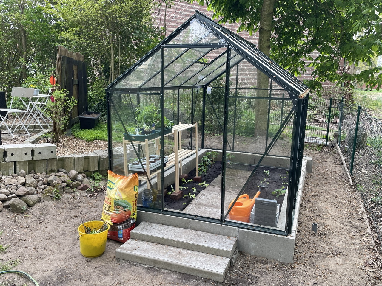 Last year we got a greenhouse for a very reasonable price compared to now and we finally managed to set it up (with oooonly just a little help…) Oh, and the door is still missing 🙂 I’m a complete newcomer to greenhouse gardening and now I’m very hooked about the first try!