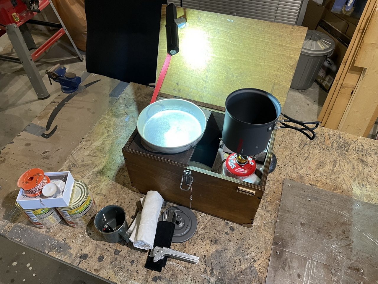 Years ago, I made cooking chuck box, intended to be used for an occasional overnighter at the lake and mounted in some form of converted van, station wagon or the like. Well, things went a little different – no van, but my trusty old Lada Niva, called “Juri” that I still proudly own today and that steadily serves me very well.