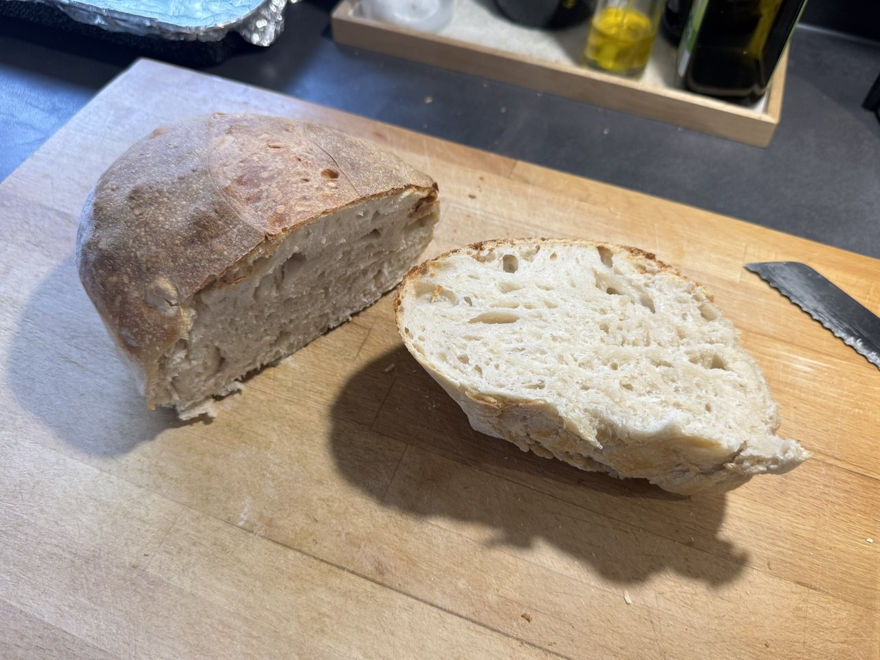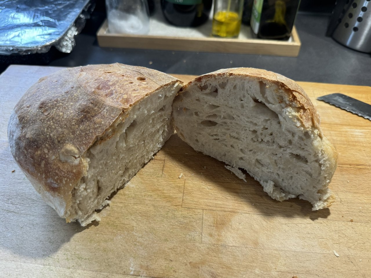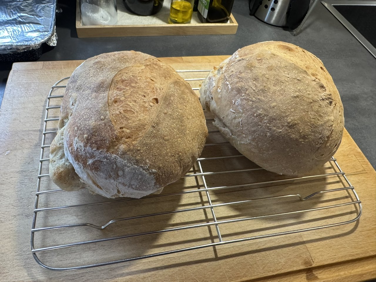 Using my trusty old “No-Knead Bread” recipe I got two acceptable loaves, fresh from the oven, scenting heavenly and tasting really good! With a good crust and a soft inside this is a real treat, still warm with a touch of butter. (In reality they’re a little more browned than the images tell).All Categories: