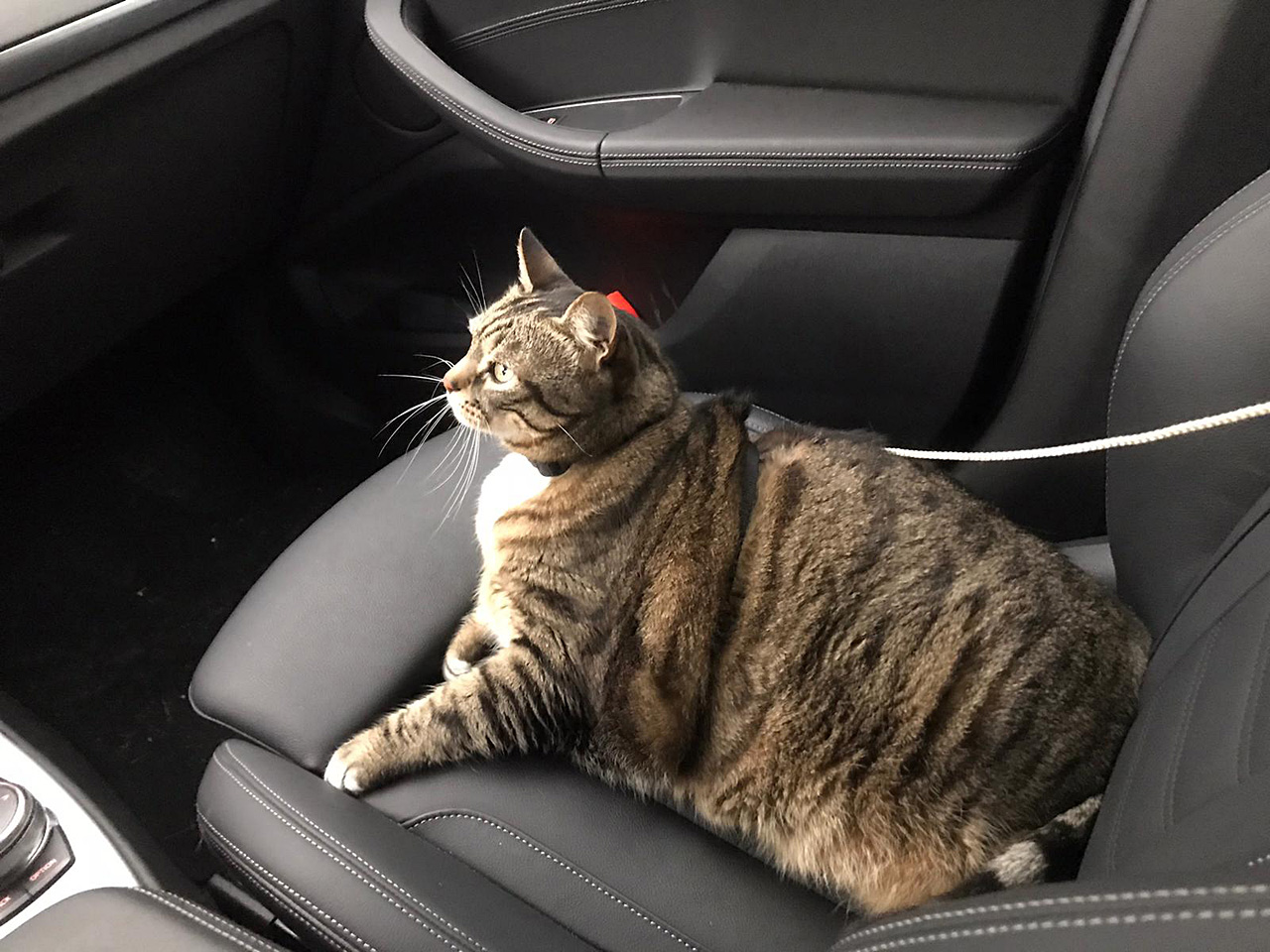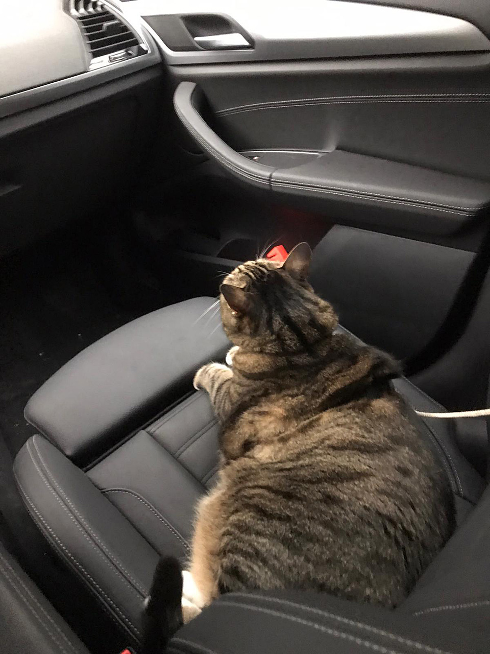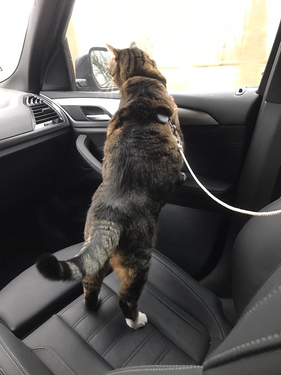 So we had a 10 minute countryside drive to my sister in law’s house today… 🙂 Gattina is generally very relaxed when she’s in the car, but this time she wasn’t “trapped” in her transport basket but could wander about almost freely. She was so curious and excited by all the fascinating sights from the window!