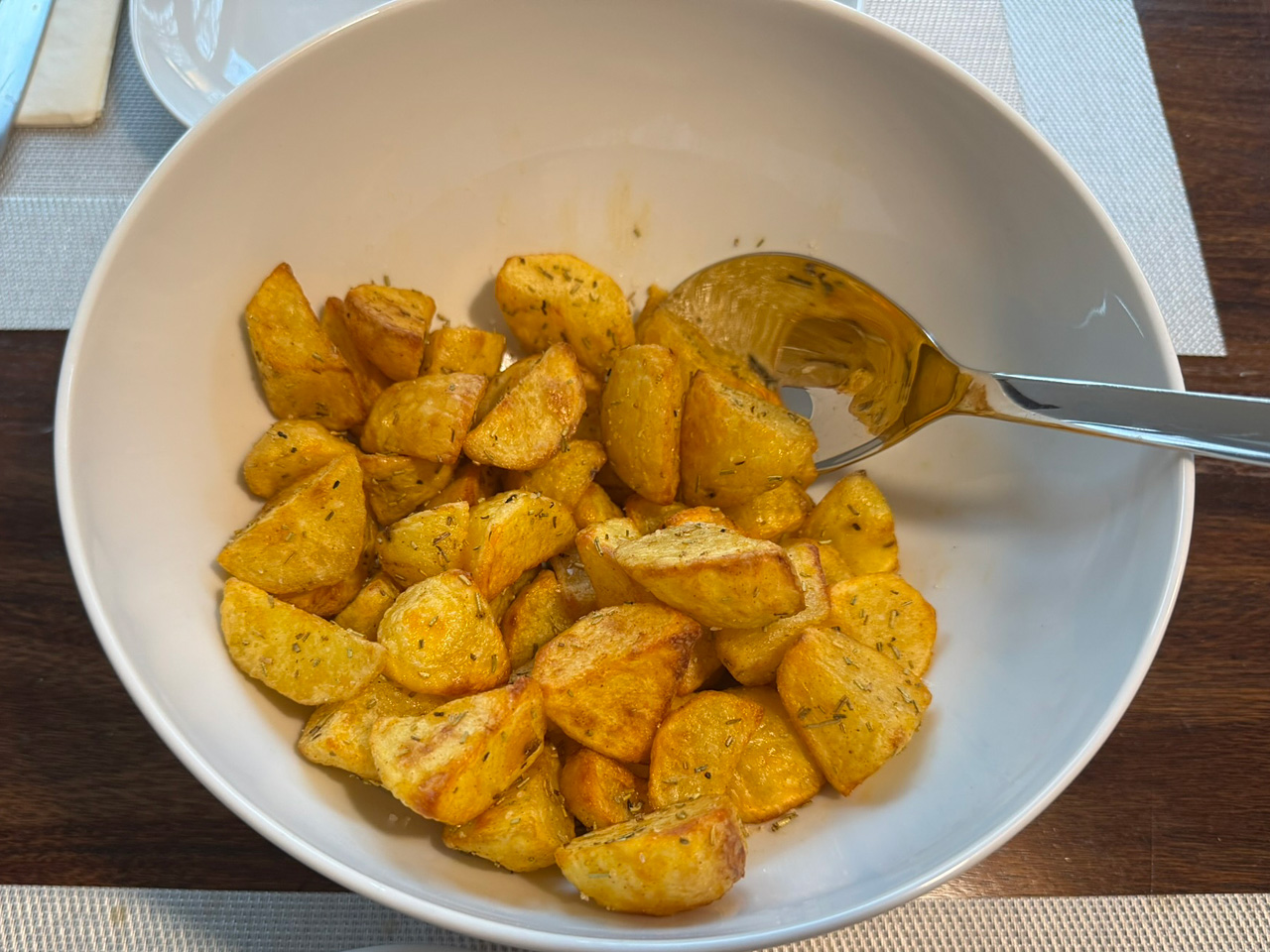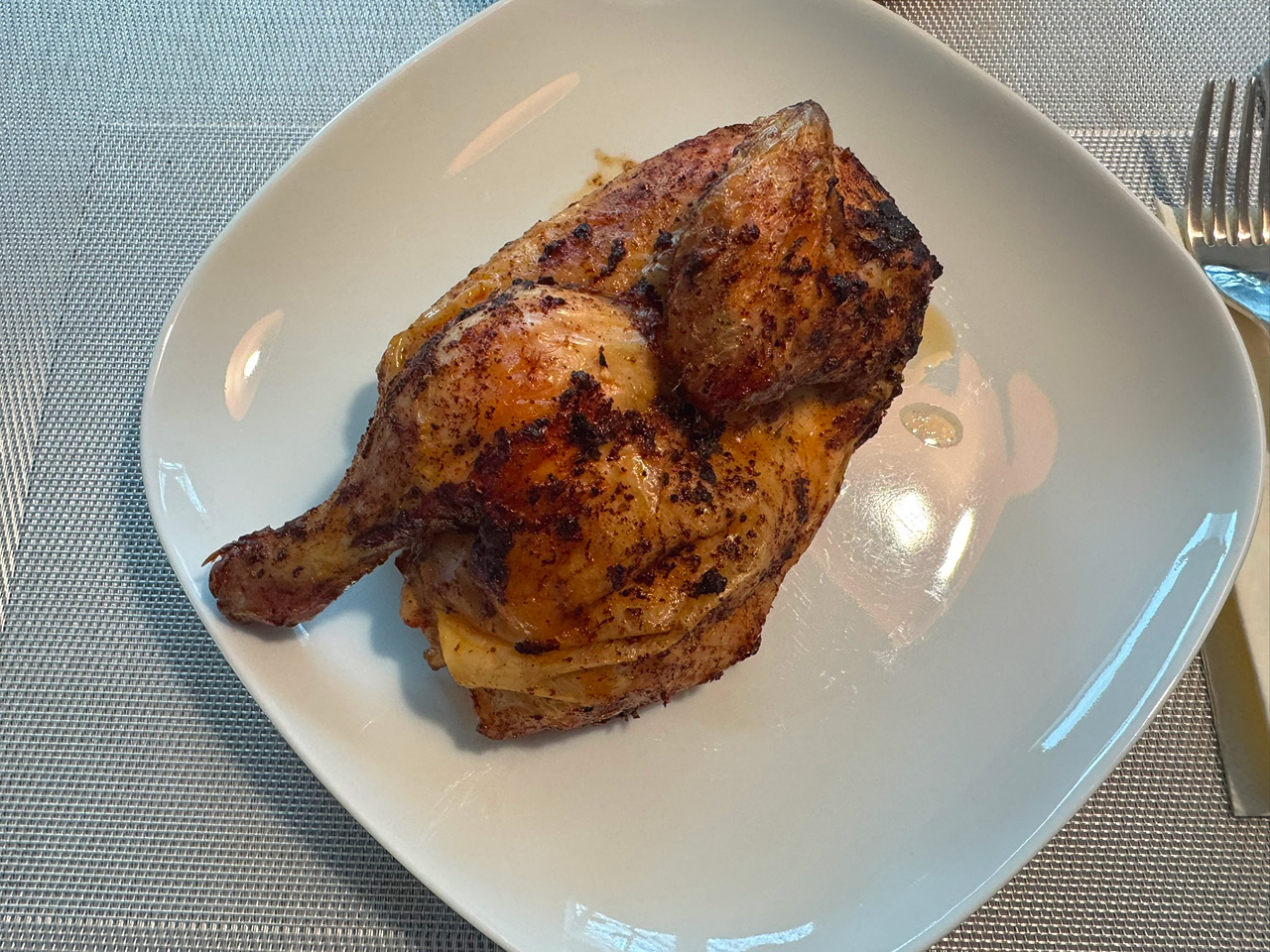 One thing that I have learned, though (by an earlier mistake, LOL): If you have a convection oven, don’t use it. Set your oven to 200 °C (390 °F) above-and-below heat only. Your chicken will come out much more tender and much less dry! I served this with rice, drizzled with the liquid from the roasting pan and sprinkled with some spring onion and sesame seeds.
