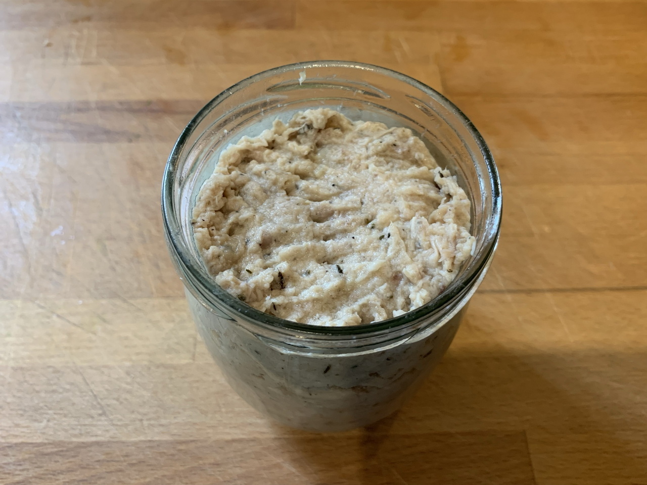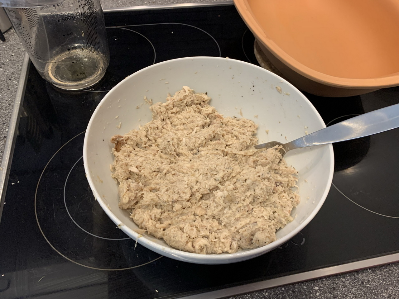 Well, I’m really into cooking, but these days I stumbled upon something completely new to me again: Rillettes. A french type of shredded strands of pork/chicken/duck or even fish as a soft and savoury spread for toasted bread and the like.