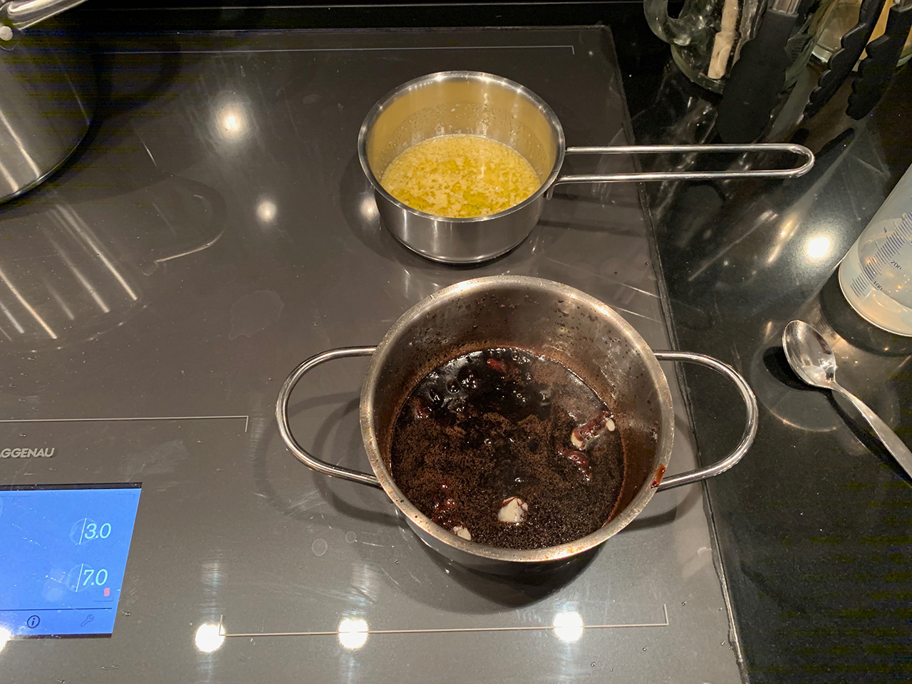 So let’s make a “Roux“… Ahh… yeah, right. Sure. Of course. This is french. It’s pronounced ( /ˈr/ ) and this sounds sooo much better than the german Mehlschwitze, which – honestly – sounds more like a sore throat 🙂 .